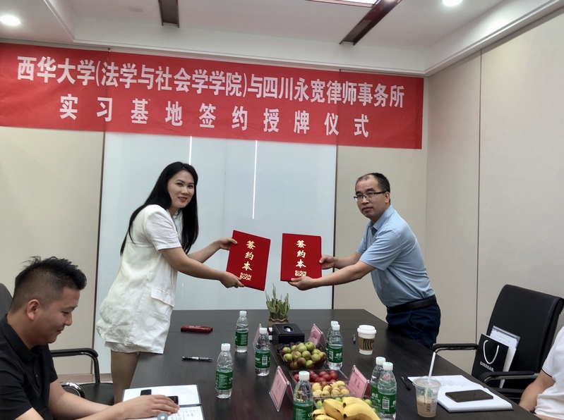 7月21日,法学与社会学学院与四川永宽律师事务所举行“法学实习基地”签约暨授牌仪式。法学与社会学学院院长张邦铺、学院党委副书记廖磊、法学系系副主任罗娟、四川永宽律师事务所主任程祖丽、副主任李杰及相关人员参加了授牌仪式。本次会议由四川永宽律师事务所主任程祖丽主持。
