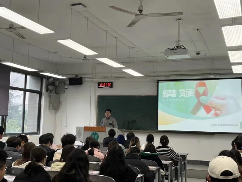在第36个“世界艾滋病日”来临之际,为提高同学们对艾滋病的认识,呼吁大学生对艾滋病患者给予尊重和关爱,消除对艾滋病患者的歧视,法学与社会学学院青年志愿者服务队于11月24日中午在6C-322开展以“爱青春,艾远离”为主题的防艾观影会,学院2022级与2023级共100名学生代表参与此次活动。