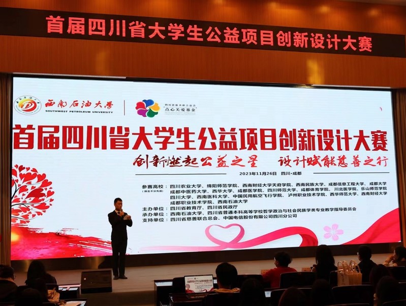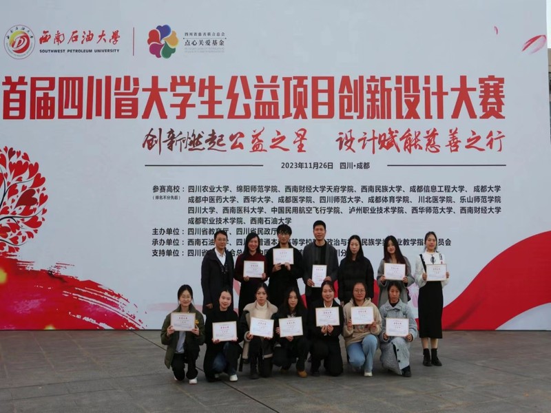 2023年11月26日,首届四川省大学生公益项目创新设计大赛决赛在西南石油大学举行。由法学与社会学学院副院长熊征领队,西华大学三支代表队参加了本次比赛,并获得优异成绩。