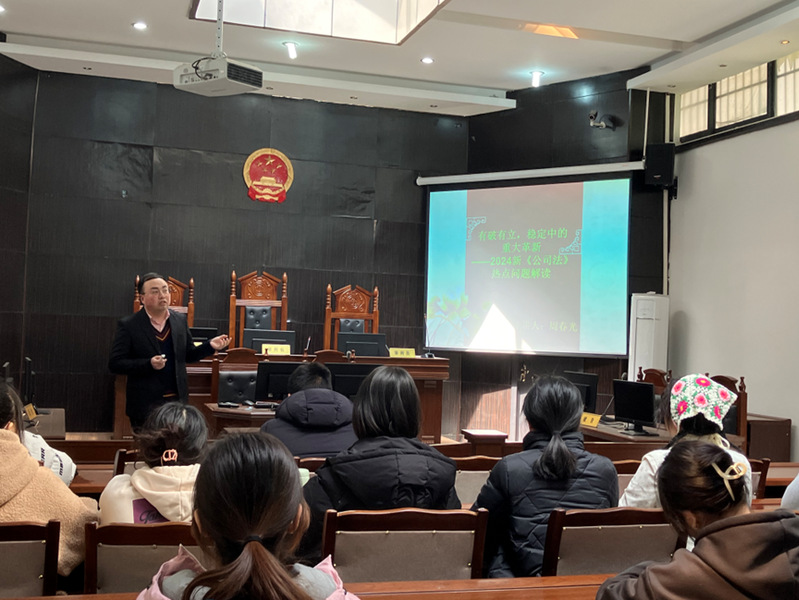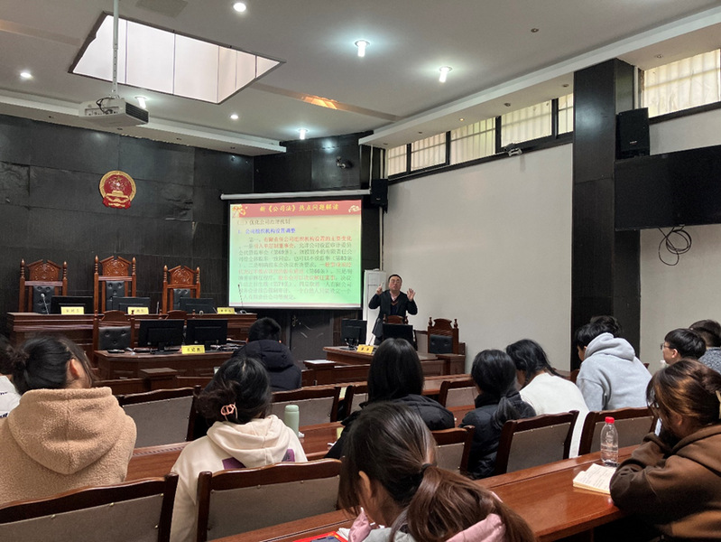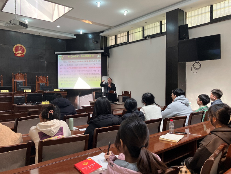 为了紧密衔接立法动态与学术热点,提升本科生与研究生的培养质量。2024年3月7日下午,法学与社会学学院教师周春光在模拟法庭举办了题为“有破有立,稳定中的重大革新——2024年新《公司法》热点问题”的讲座,本次讲座由法学系教师龙铁主持,学院教师代表以及相关专业研究生、本科生代表参加了本次讲座。