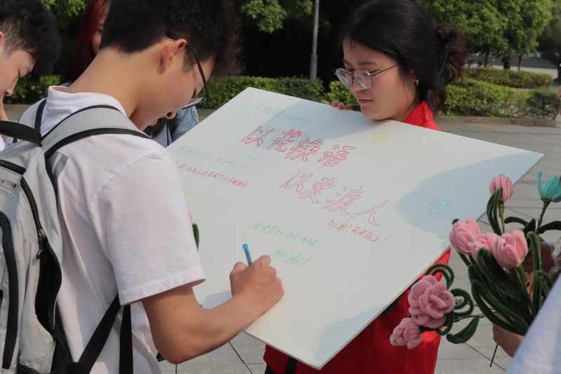 “以花换语,以爱渡人”祝福征集校园活动现场