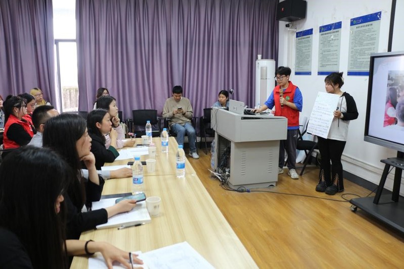 本次活动采用“社工+指导教师+学生助手”三方角色的实验课指导小组模式,通过组织完成百人以上大规模的实验演练开展活动。活动前期,成都市新空间社会服务中心的雷建为学生助理小组作指导,进行助理培训、方案设计,共同研讨任务书内容。活动中以“帮助帮教对象解决当前问题、改正不良行为、重回生活正轨”为目标,要求学生按照“可行性、创新性、成效性”的指导要求,分小组设计开展个案服务、小组活动和户外校园活动方案。经过激烈的讨论创新、紧张的筹备汇报,最后评委专家组结合各组活动与汇报表现,从专业性、活动创新性、完整度、可行性等多个维度进行评价指导。