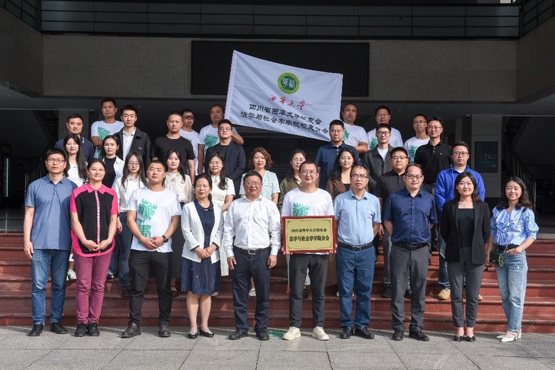 学校党委常委、副校长刘小兵为四川省西华大学校友会法学与社会学学院校友分会授牌、并授会旗