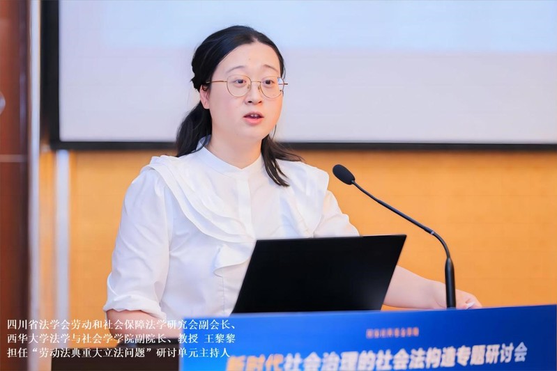 四川省法学会劳动和社会保障法学研究会副会长、我院副院长王黎黎教授主持“劳动法典重大立法问题”研讨单元,并在“中国特色集体协商制度”研讨单元,以《互联网平台的集体协商企业方资格及其法律实现》为题做主题报告。