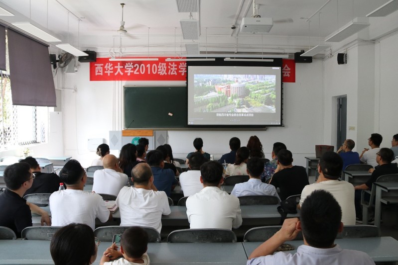 校友们观看了学校及学院的招生宣传片。片中展示了学校优美的校园环境、先进的教学设施以及法学专业深厚的底蕴和丰硕的教学成果。随后,2010级法学专业辅导员徐薇召开“返校班会”,校友们分别上台分享他们在法律及其相关领域所获的成就,重温了当年的校园生活,同时也向母校和校友们送上了最真诚的祝福。