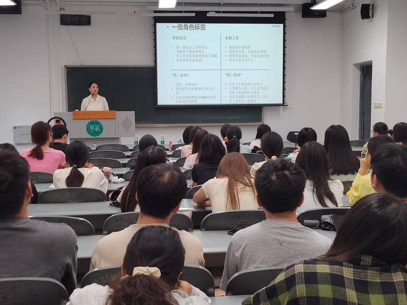 在就业指导分会场,学院邀请了优秀校友唐小涵及2024届优秀毕业生王丽茹作就业分享。唐小涵为同学们解读就业市场现状,并提供个人职业规划建议,并对即将步入职场的同学们表示鼓励,希望同学们勇于尝试不同的职业方向,寻找最适合自己的发展道路,不断提升综合素质,实现个人价值。王丽茹分享了自己的求职经历,鼓励同学们勇于尝试,敢于创新。