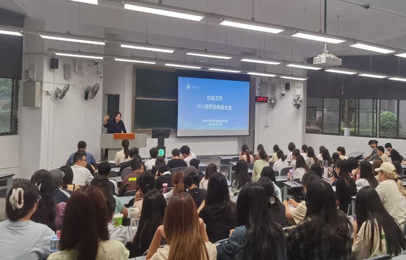 为了帮助大三学生明晰学业规划,明确毕业要求,了解考研和就业形势,进一步探索多元化生涯发展路径,法学与社会学学院2021级社会工作专业于6月26日在6B-104召开年级大会暨考研就业动员大会,本次大会由副院长熊征、系主任刘婷、学工办主任奉姣、2024届毕业生优秀学生代表出席会议,2021级社会工作全体学生参会。