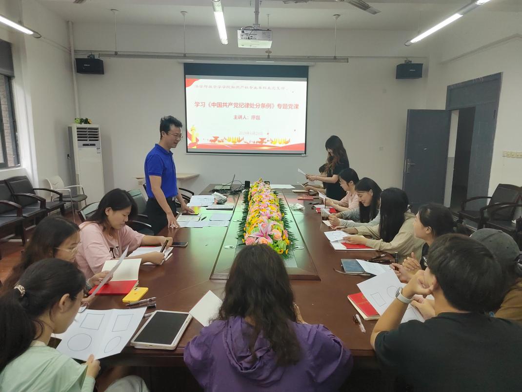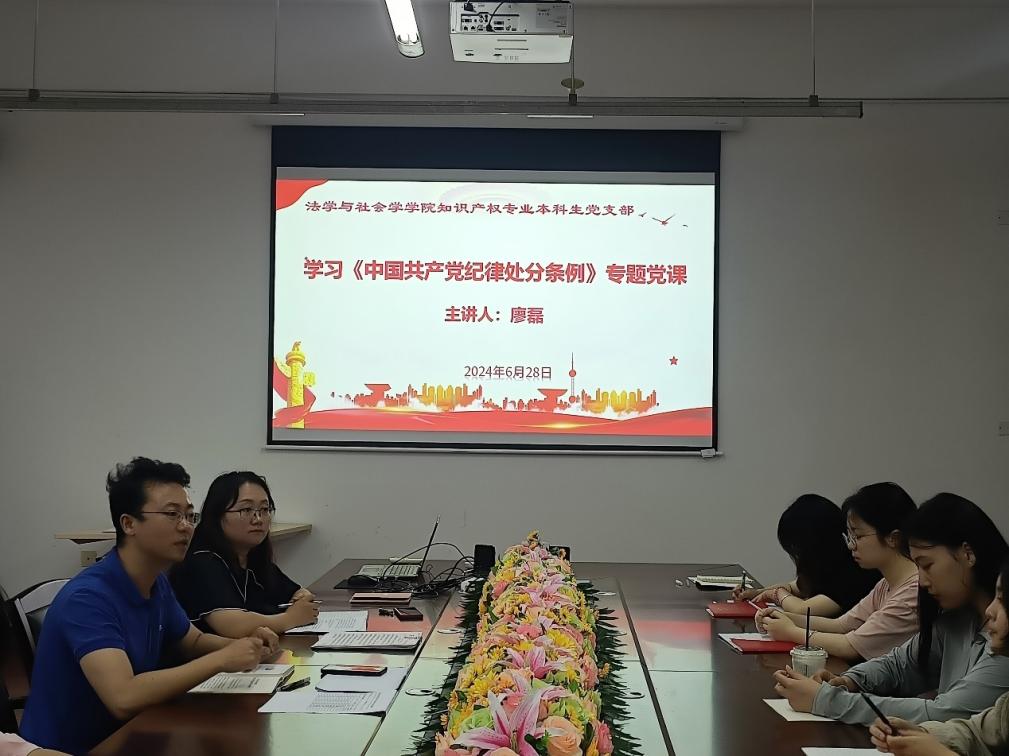 2024年6月28日,西华大学法学与社会学学院知识产权专业党支部在6D-318会议室举行了一场别开生面的专题党课,深入学习《中国共产党纪律处分条例》。本次党课由学院党委副书记廖磊主讲,知识产权专业党支部书记奉姣主持。党课内容丰富,形式多样,旨在加强党员的纪律意识,提高党员的政治素养。