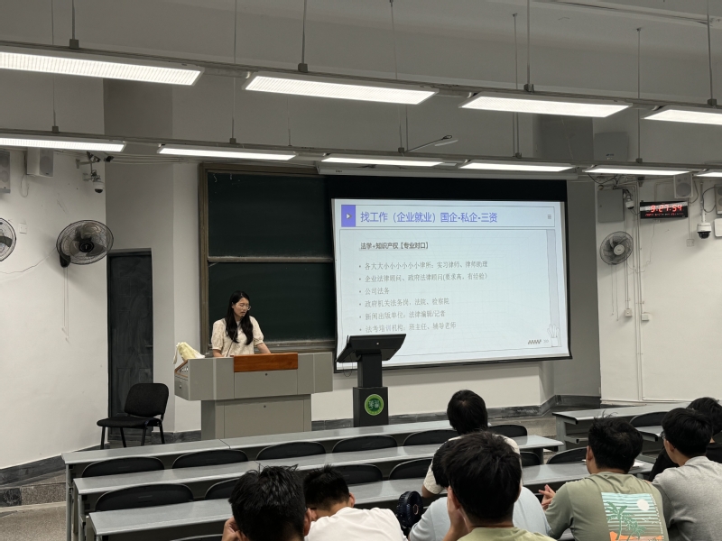 为了做好2025届毕业生学业和就业相关工作,法学与社会学学院于6月27日上午在六教召开了法学、知识产权2021级学生年级大会。为了满足同学们多样化的需求,切实地为同学提供帮助,此次大会分为三个主题:全体大会、考研动员以及就业指导。