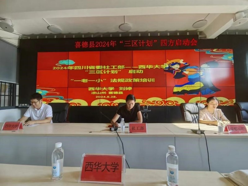 8月28日,在喜德县的热烈氛围中,备受期待的“三区计划”四方启动会成功举行。此次会议由喜德县委社工部叶俊沁部长主持,来自喜德县五个社区的社区书记、社工以及社区工作人员齐聚一堂,积极参与了本次会议。刘婷副教授与蒋秀芳博士,在会上分别就“一老一小”政策与新农合医疗保险政策进行了深刻解读,有效提升了与会者对相关政策的理解和应用能力。学院副院长熊征教授详细介绍了2024年“三区计划”项目的主要工作内容,并承诺西华大学工作组将充分利用高校资源,与各方携手,为喜德县“三区计划”的顺利实施提供强有力的智力支持。