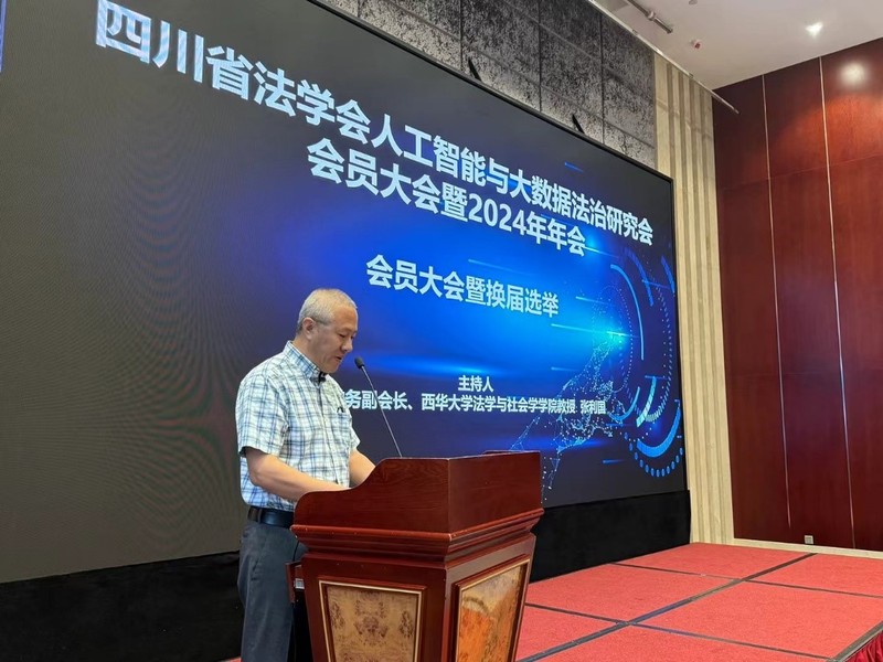 2024年9月28日,由四川省法学会人工智能与大数据法治研究会主办,西华大学法学与社会学学院、四川蓝贵律师事务所承办的四川省法学会人工智能与大数据法治研究会会员大会暨2024年年会在成都市祥宇宾馆举行。本次会议邀请到来自四川大学、西南财经大学、西南民族大学、四川师范大学、西南科技大学、西南石油大学、成都理工大学、西华大学、西南交通大学、西华师范大学、汕头大学、贵州大学等高校师生和成都市中级人民法院、成华区人民法院、青羊区人民法院、金堂县人民法院、内江东兴区人民法院、四川蓝贵律师事务所、四川省人工智能协会、北京泡泡玛特公司等实务界人士100余人出席本次研讨会。我院张邦铺院长、王黎黎副院长、汪灏教授、张利国教授、李西臣教授、余嘉勉副教授、罗娟副教授、吉方英老师、贾年龙老师、杨尊源老师、蒋平老师以及研究生代表等师生20余人参加了本次研究会。