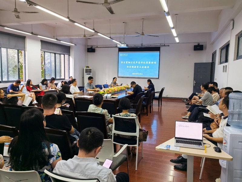 9月26日下午,学院党委组织全体教职工集中学习领会习近平总书记重要讲话和全国教育大会精神,学院党委书记张雪征领学。