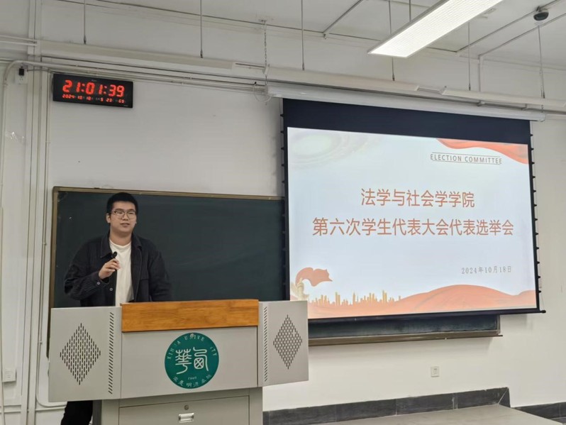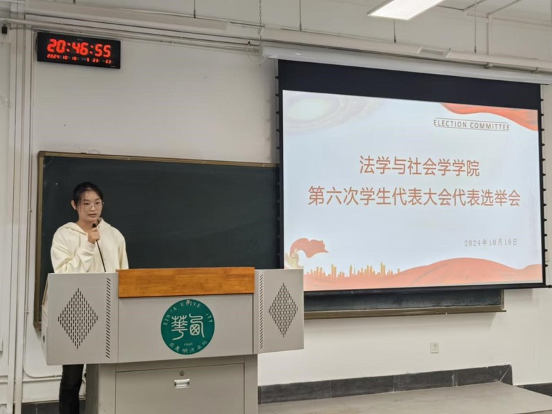 法学与社会学学院团委组织部于10月18日晚上在6C-313进行第六次学生代表大会代表的选举。本次会议的举办旨在选举参加西华大学校学生会第六次学生代表大会学生代表。参与本次会议的主要有法学与社会学学院本科生各班级投票代表、本科生候选人。本次会议由组织部黄梦媛主持。