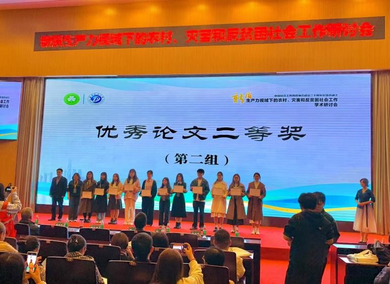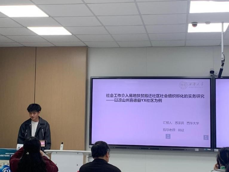 研究生苏家昌则带来了题为《社会工作介入易地扶贫搬迁社区社会组织孵化的实务研究》的论文,展示了社会工作在推动易地扶贫搬迁社区社会组织孵化与发展的实务经验和成效。他的研究报告聚焦社会工作在扶贫搬迁社区建设中的独特角色,并在本次大会中荣获优秀论文二等奖。