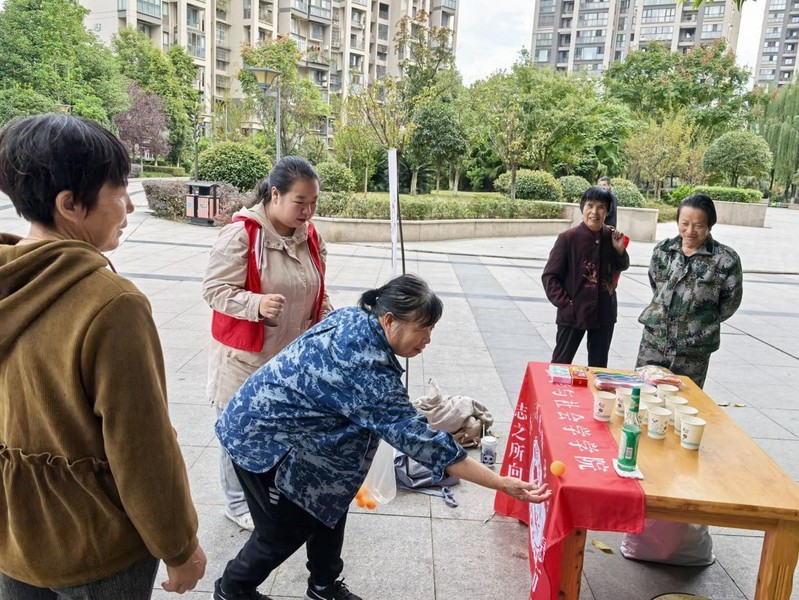 活动开始前,志愿者们从制定策划案、活动宣传和物资筹备等方面对此次活动进行了充分准备。111日上午,志愿者们听从任务安排,分工明确,提前到达西华苑社区开始摆点活动。此次活动设立了投掷乒乓球、合唱经典歌曲的小游戏,由各位志愿者向老人介绍游戏规则并发放纸巾、香皂、牙刷等相应的活动奖品。活动过程中,队员们积极引导老人参与活动,与老人互动、聊天,了解他们所认识的传统文化,科普生活常识,为他们解决智能手机使用等日常问题,展现出学院青年志愿者的青春面貌。