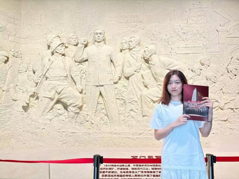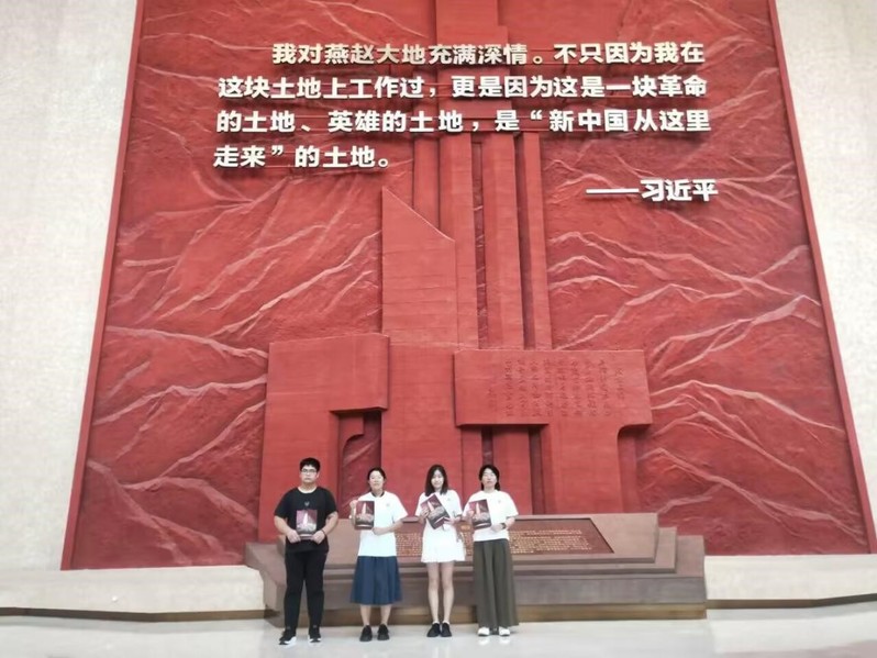 接下来,宣讲队来到人民解放纪念馆,在纪念馆内学习红色精神,学习光荣的近代史,并将西柏坡精神以传单的形式传播给前来学习的游客,同时,实践团队的成员们结合自己的学习和生活实际讲述革命故事。