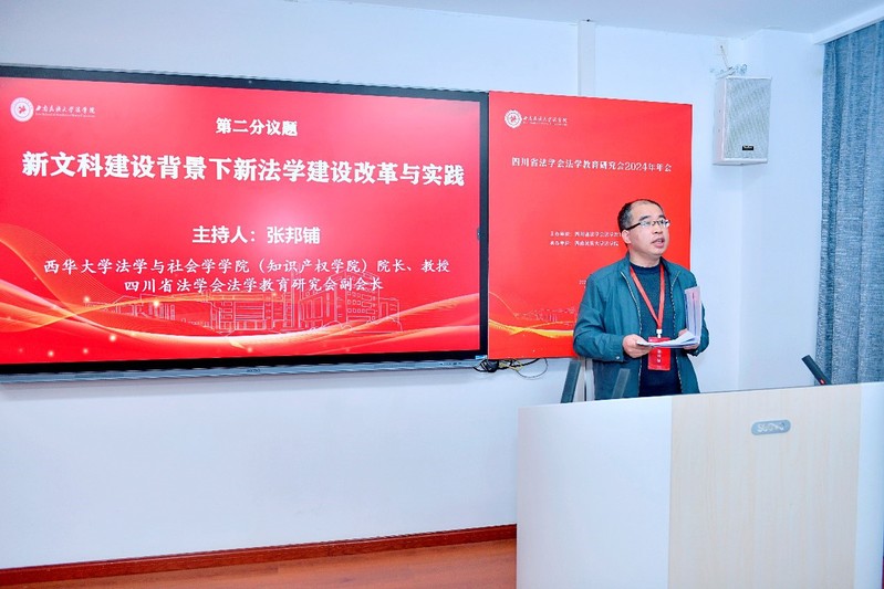 12月初,由四川省法学会法学教育研究会主办,西南民族大学法学院承办的2024年四川省法学会法学教育研究会年会暨“全面深化改革,完善以实践为导向的法学院校教育培养机制”研讨会在文翰学苑宾馆举行,来自二十余所高校与实务部门的专家学者以及来自司法实务部门的同志出席本次研讨会。西华大学法学与社会学学院张邦铺教授、唐丹教授、余嘉勉副教授、罗娟副教授参加了本次年会。