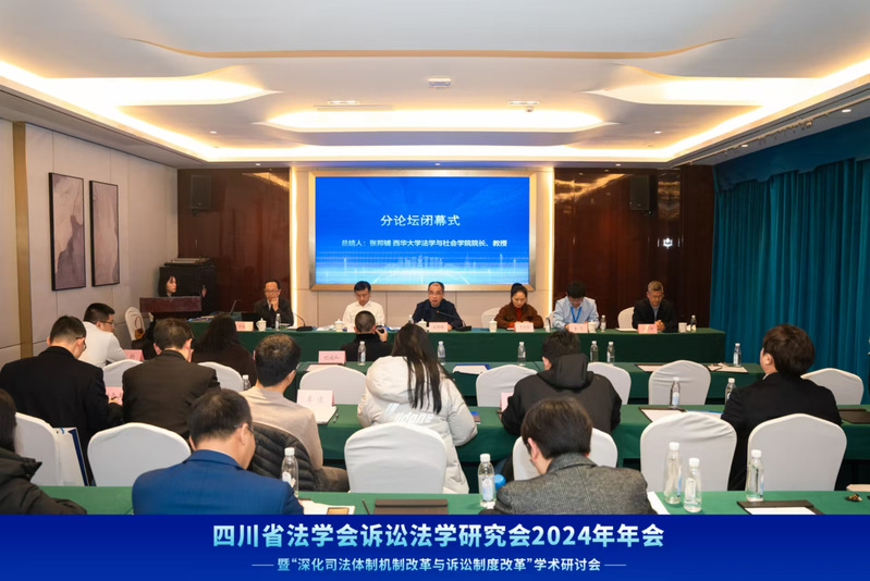 2024年12月7日,四川省法学会诉讼法学研究会2024年年会暨“深化司法体制机制改革与诉讼制度”学术研讨会在泸州举行。本次会议由四川省法学会诉讼法学研究会主办,四川警察学院、四川警察执法研究中心、纠纷解决与司法改革研究中心(省哲社重点研究基地)承办。来自全省高等院校、科研机构、司法机关、法律服务机构等近200位专家学者、法律实务工作者、论坛征文作者参加会议。西华大学法学与社会学学院院长张邦铺教授、夏永全副教授、刘婷副教授以及部分法律硕士研究生加了此次会议。学院院长张邦铺教授作为分论坛闭幕主持人,就“民事司法理论与实践研究”“智慧司法与司法体制机制改革”2个分议题进行了总结。