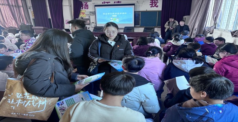 最后,在龙蟠镇初级中学,法学、知识产权系教师党支部委员陈小鲁给学生们开展反校园霸凌与防范教育,法律专业研究生党支部党员们给每一位学生发放普法宣传册,并耐心解答他们提出的问题,让学生们提高法律意识和自我保护能力。