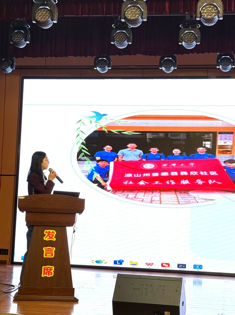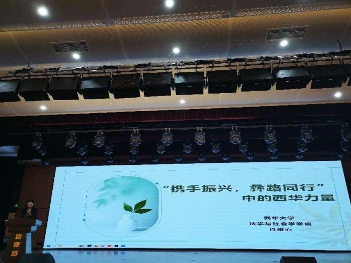 法学与社会学学院教师代表肖雅心博士与会参加,并在会议上以《在 “携手振兴,彝路同行中的西华力量》为题发言,介绍了西华大学参与三区三州对口帮扶行动,以稳得住、过得好为核心目标,依托政校社联动机制,围绕社区治理创新、特殊人群服务深化、社工体系规范化建设三大主线,探索高校智力支持与本土化实践相结合的发展模式。