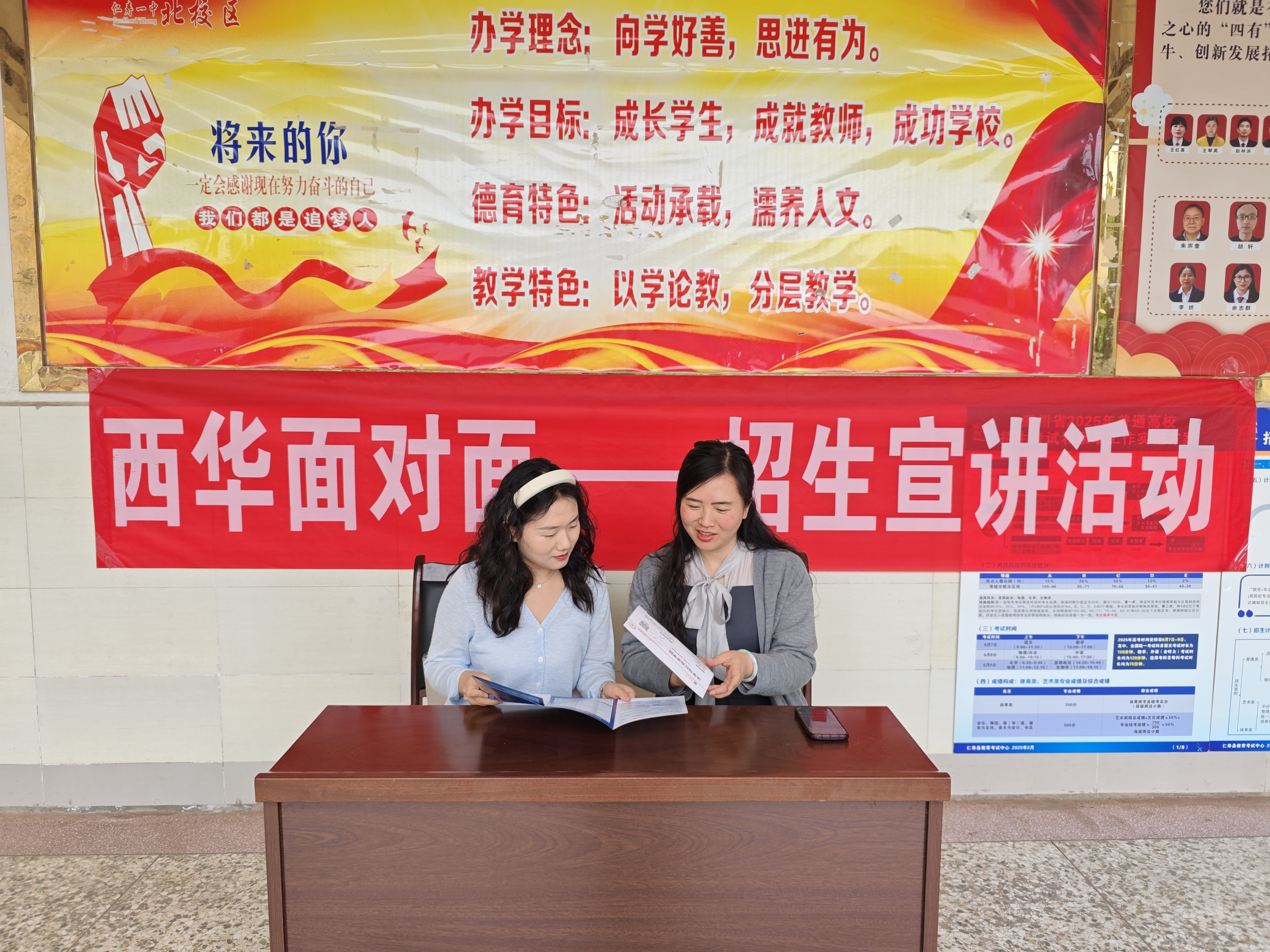 为进一步落实学校招生宣传工作部署,提升学院社会影响力,吸引优质生源,2025年4月24日,法学与社会学学院党委副书记廖磊带领学院招生宣传工作组,赴学校的“优质生源基地”——四川省仁寿县第一中学北校区与南校区开展招生宣讲活动,与师生深入交流,全面介绍学院办学特色与人才培养成果。