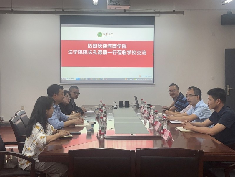 2025年5月14日,河西学院法学院院长孔德播一行莅临我院,就人事人才工作、本科专业建设与学科发展等议题开展深入学术交流。本次交流会聚焦法学教育前沿实践,双方围绕科技创新与法学融合、社会工作等领域展开热烈探讨。