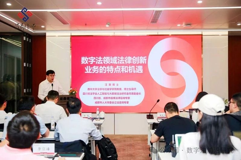 2025年5月30日,四川省法学会人工智能与大数据法治研究会常务副会长汪灏教授、博士生导师应邀赴四川蜀鼎律师事务所讲授《数字法领域法律创新业务的特点和机遇》专题讲座。