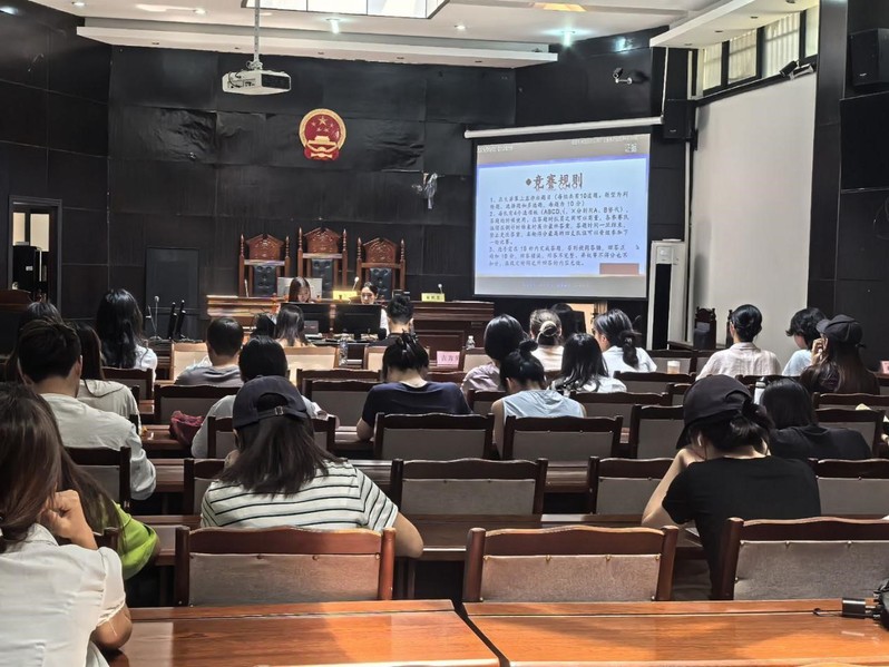 为深入学习贯彻知识产权精神,增强师生法治观念,2025年6月13日中午,知识产权知识竞赛决赛在新模拟法庭隆重举行。学院党委副书记纪委书记廖磊、知识产权系主任吉方英、团委书记范锡林、辅导员高会和陈莎作为评委出席本次活动,与现场师生共同见证这场知识与智慧的激烈角逐。