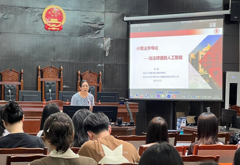 9月11日上午,西华大学法学与社会学学院邀请四川大学图书馆副研究馆员、四川大学法学院法律大数据实验室研究人员张妮博士,在学院新模拟法庭开展题为“计算法学导论:当法律遇见人工智能”的学术讲座。本次讲座由学院陈珊教授主持,学院法律硕士研究生及部分本科生积极参与。