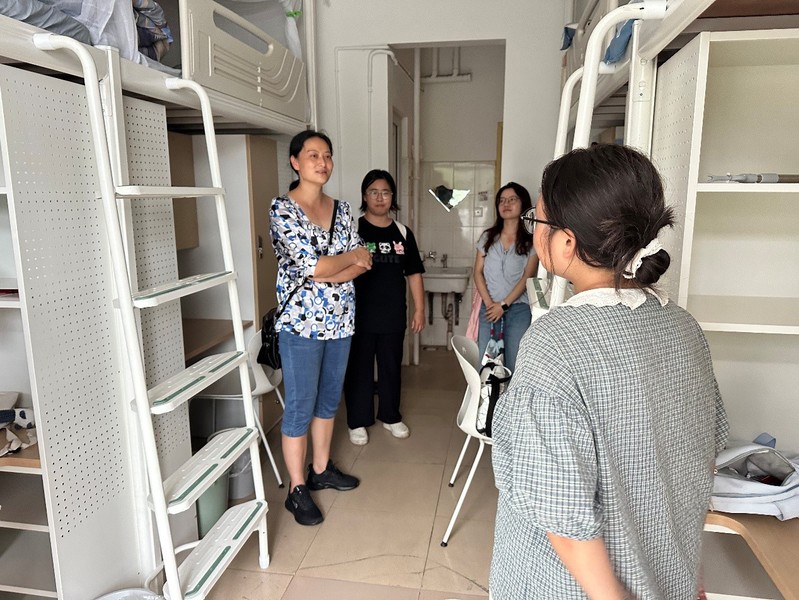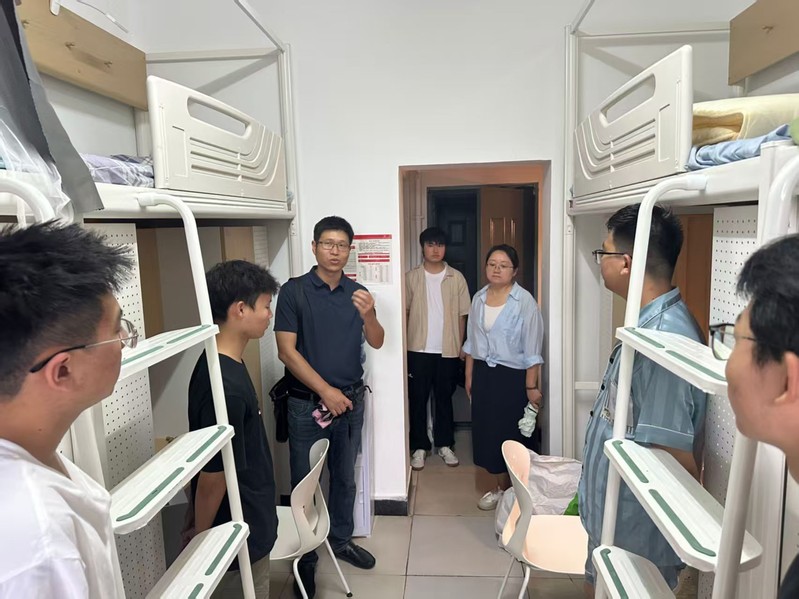在走访过程中,学院领导仔细查看了宿舍的卫生状况、用电安全以及设施设备是否完好,针对发现的问题及时进行了记录与整改指导。随后,院领导与新生们亲切交谈,询问他们的适应情况以及入校后的心理状态。在交流中,许多新生表示,面对即将到来的大学生活和对环境与身份的转变,他们既充满期待,又难免有些焦虑。针对新生们普遍存在的心理压力,辅导员耐心地为他们答疑解惑,鼓励学生们以积极的心态面对未来的挑战。院领导表示,同学们作为新时代的青年,既要沉下心来钻研专业知识,练就过硬本领,还要主动参与校园建设、社会服务,让青春在奋斗中绽放更有意义的光芒。希望同学们能敢闯敢试、不负韶华!