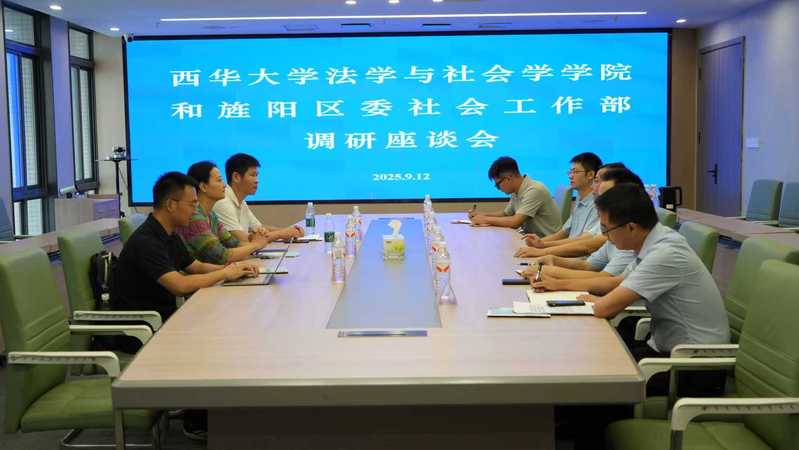 9月12日,西华大学法学与社会学学院党委书记张雪征、副院长熊征一行到旌阳区调研,并与区委常委、政法委书记杨春林、区委社会工作部常务副部长何剑等相关领导座谈交流。