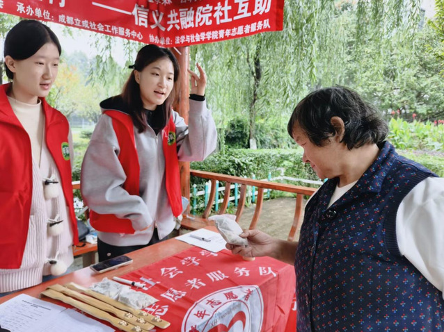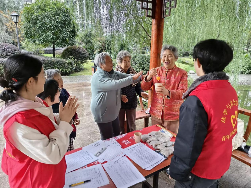 活动开始,老人们认真听完队员们细致的讲解后,个个精神矍铄、热情高涨地投身活动中——筷子夹乒乓球、听歌识曲、记忆力大挑战,尽显“老当益壮”的风采。活动落幕时,老人们依据规则与喜好领取了心仪奖品:柔软保暖的毛绒手套、滋养身心的同仁堂泡脚包等,每一份礼品都贴合老人养生需求,满含对他们健康的关切。接过奖品的老人们十分高兴,夸赞队员们细心周到,言语间满是对本次活动的认可与高度满意。有些意犹未尽的老人迟迟不愿离去,纷纷拉着队员们唠起家常,分享过往岁月里的难忘故事,队员们倾心倾听、耐心回应。最后,这场满载关爱与暖意的活动,在欢声笑语中落下圆满帷幕,温情在陪伴中静静流淌。