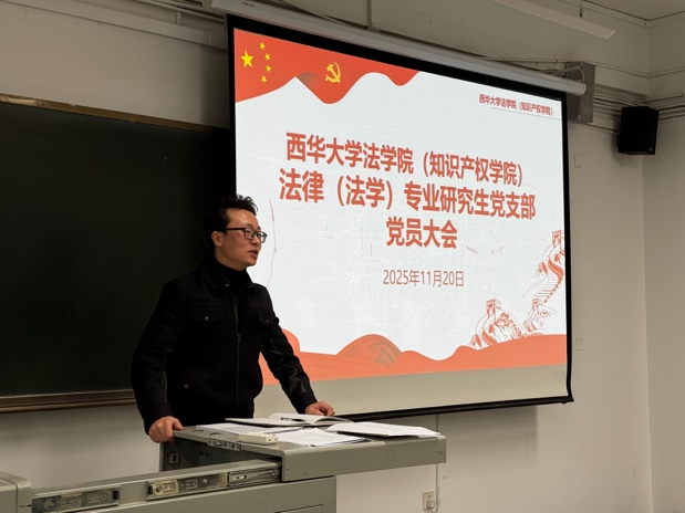 学院党委副书记廖磊同志宣读学院党委关于批准成立党支部和组织召开党员大会选举支部委员会的批复。按照会议流程通过《西华大学法学院(知识产权)学院法律(法学)专业研究生党支部委员会选举办法》,通过候选人和监票人、计票人名单,并采取无记名的方式进行了支委会选举投票,选出5名支委会成员,并由支委会代表何冲作表态发言。新一届支部委员会投票选举党支部书记和副书记,并明确了支部委员会的分工和职责。