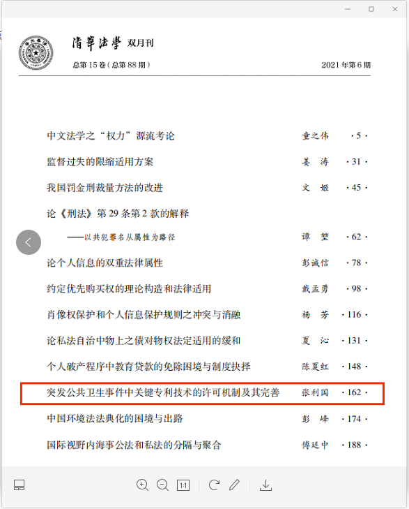 近日,在《清华法学》2021年第6期中,法学与社会学学院张利国教授发表的论文《突发公共卫生事件中关键专利技术的许可机制及其完善》被收录其中,针对突发公共卫生事件中实施关键技术的保障机制进行了研究。研究发现,通过合理的制度安排,能够建立机制确保在应对突发公共卫生事件时及时有效的配置技术资源,以保障专利药品、器械、疫苗等必需产品的有效供给。社会成员能够主动利用制度机制来有效的配置技术资源,而社会主体的这种自发行动需要提供制度激励和保障。因此,文章建议,实施关键技术的保障机制应以强制为保证、以合作为基础,加强我国专利强制许可规则的可实施性,建立概括性强制许可,完善司法程序中的专利强制许可,以此鼓励社会成员在应对公共卫生事件中能主动、自发的达成专利许可合同,有利于鼓励自愿的开放许可,从而有利于保障在突发公共卫生事件时对关键专利技术的有效实施。本文有助于理解专利许可规则在技术资源配置中发挥作用的方式。