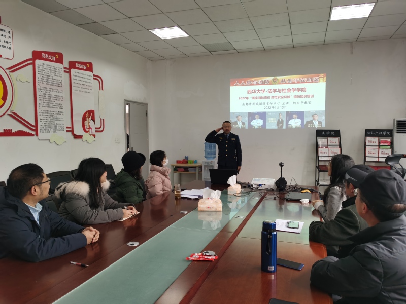 为进一步增强学院教师消防安全意识,提高消防应急反应能力、处置能力和自救、互救、逃生能力,1月13日下午,法学与社会学学院在6A-102举行以“落实消防责任,防范安全风险”为主题的消防知识培训。此次培训由成都市利民消防宣传中心何文平教官主讲,学院全体教职工参加了此次培训。
