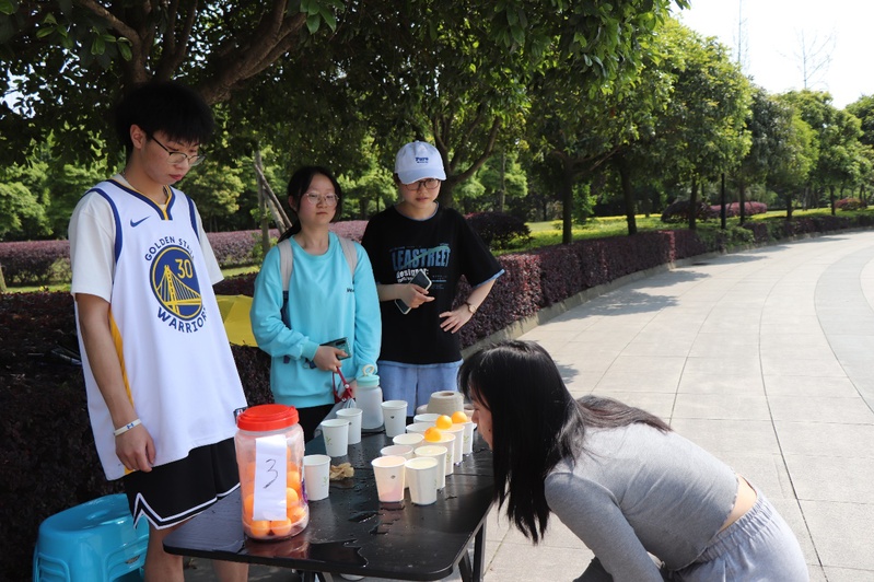 早上八点,比赛拉开序幕。参赛选手需在规定的时间范围内到活动现场参加比赛。比赛的规则为:限时完成定点打卡项目,即选手完成签到后,以打卡点顺序为线路,完成各个打卡点的游戏任务。艳阳高照,同学们挥洒汗水,坚持不懈奔向终点;工作人员恪尽职守,用细心耐心为活动的顺利进行保驾护航。参赛选手们情绪饱满,热情高涨,圆满完成了一次又一次挑战。拼搏之心激励彼此前行,全力以赴激荡成长之路。全力以赴,勇于拼搏,亦是青春最好的模样。