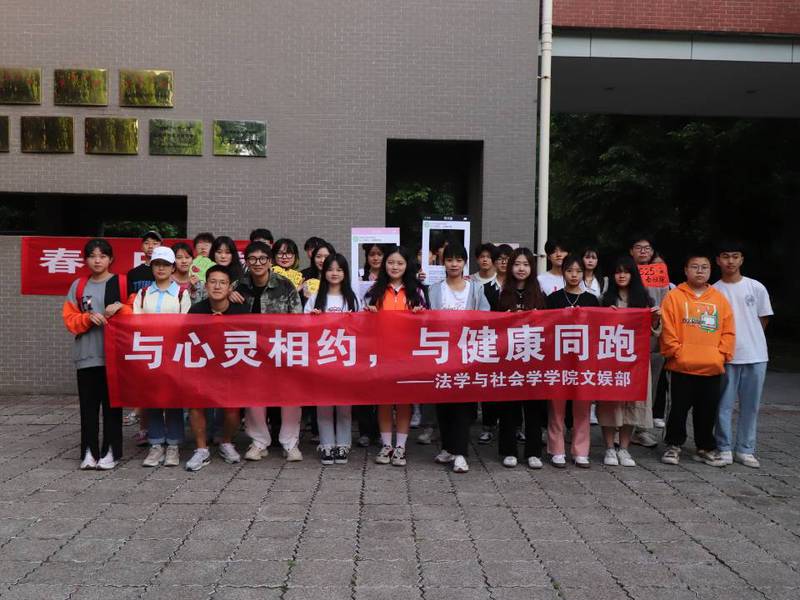 为营造“封校不封心”的浓厚氛围,鼓励同学们在疫情防控封校期间参与心理健康活动,增强身体素质。423日,西华大学法学与社会学学院由权益部主导,在校内顺利举行了以“与心灵相约,与健康同跑”为主题的5·25心理健康系列活动。旨在封校期间,引导全院师生积极阳光、热爱生活、热爱运动。