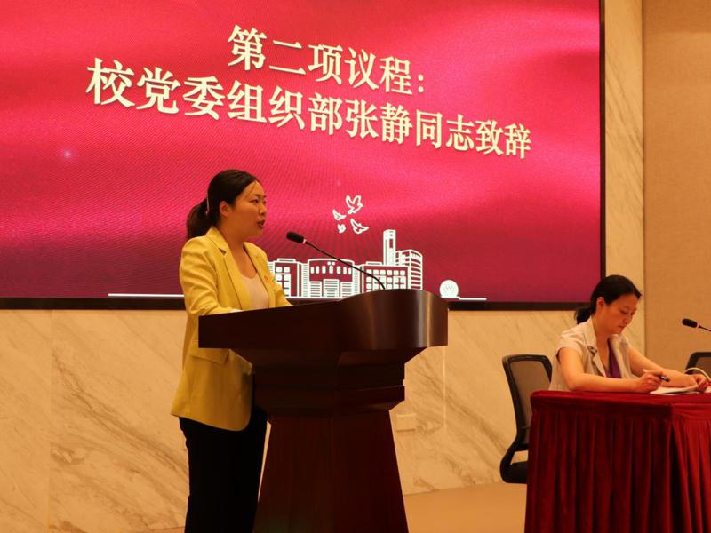 大会在庄严的国歌声中拉开帷幕。随后,张静代表学校党委组织部向大会的召开表示热烈的祝贺;同时指出学院全体师生党员要坚持习近平新时代中国特色社会主义思想,深入贯彻学校第二次党代会精神,严格遵守换届纪律,以高度负责的精神选举产生学院新一届党委和纪委领导班子。最后,她预祝本次党员大会胜利召开。