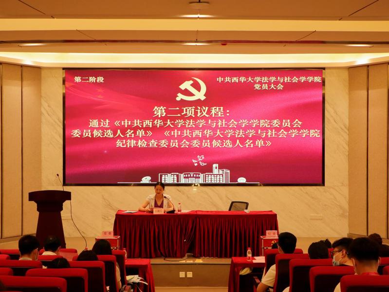 会议审议通过了《中共西华大学法学与社会学学院委员会党员大会选举办法》,表决通过了《中共西华大学法学与社会学学院委员会委员候选人名单》《中共西华大学法学与社会学学院纪律检查委员会委员候选人名单》,通过了监票人名单,宣读了计票人名单。
