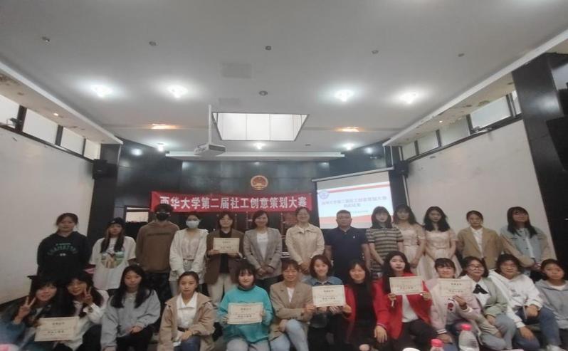 为了营造良好的创新型校园文化环境,推动校园文化建设,20225191630,西华大学第二届社工创意策划大赛决赛于六教新模拟法庭(6A-136)举办。本次大赛由法学与社会学学院承办,主题为“司法社工项目策划”。大赛邀请了法学与社会学学院副院长王黎黎老师、法学与社会学学院社会工作系主任刘婷老师、社会工作专业王杰老师担任评委。