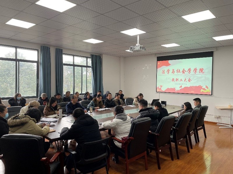 为更好地明确新学期学院发展工作和方向,为新学期开好局、起好步,2023223日下午,法学与社会学学院在6D301召开新学期全体教职工大会暨处科级干部民主测评会。学院领导班子成员,各系办主任及全体教职工参加大会,会议由学院党委书记张雪征主持。