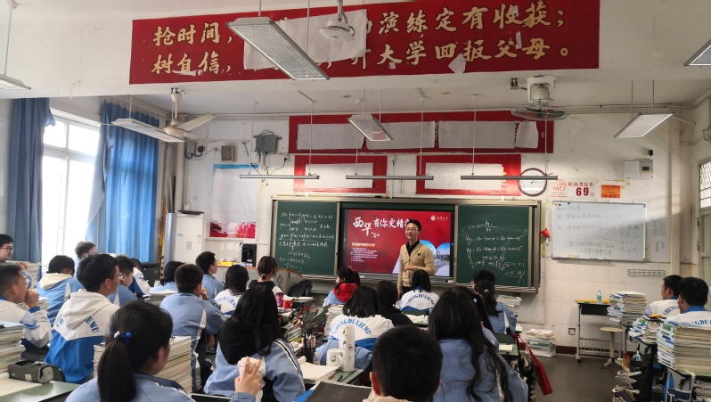 宣讲会上,廖磊以“西华有你更精彩”对学校做了简要介绍,围绕学校的人才培养理念、校园生活、科研教学和在川招生政策进行了详细讲解,并耐心回答了同学们关心的录取、培养等相关问题。中学校长张家智带领领导班子成员及高三年级教师代表全程参加了此次宣讲会,现场气氛热烈。宣讲会后双方围绕西华大学招生、专业优势、就业等方面进行了深入交流,表示未来将进一步加强交流合作,为培养优秀人才共同努力。此外,廖磊代表学校授予四川省成都列五中学大邑分校(大邑县实验中学)“西华大学优质生源基地”牌匾。