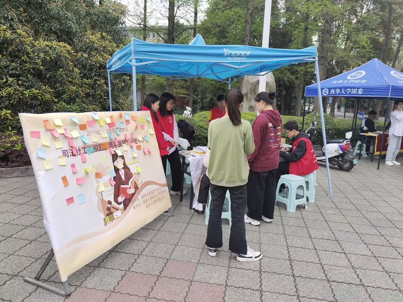 为庆祝第17个国际社工日,进一步推广社会工作理念,普及社会工作知识,2023年3月31日下午,西华大学法学与社会学学院联合社会工作协会、西华大学阳光爱心社在明德广场联合举办了司法社工进校园,携手关爱“一老一小”活动。