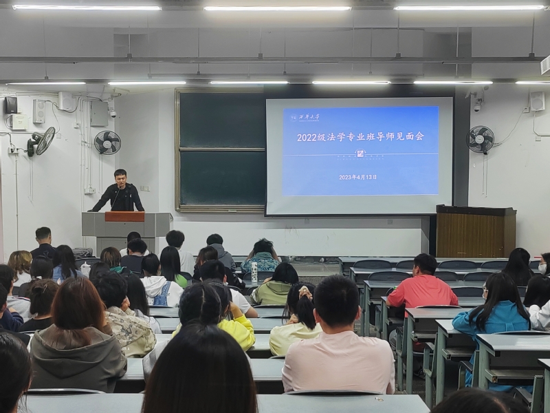 4月13日,法学与社会学学院在6B-102举行22级法学专业班级导师见面会,22级法学专业班导师杨尊源及22级法学专业本科生参加了此次活动,此次见面会由辅导员马泽鑫老师主持。