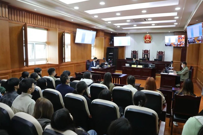 此外,同学们参观了知识产权庭诉讼服务点和审判法庭,了解了知识产权庭的发展历程和法院的日常工作,现场体验了利用手机、电脑在线立案、在线庭审,对知识产权诉讼流程有了全面的了解。