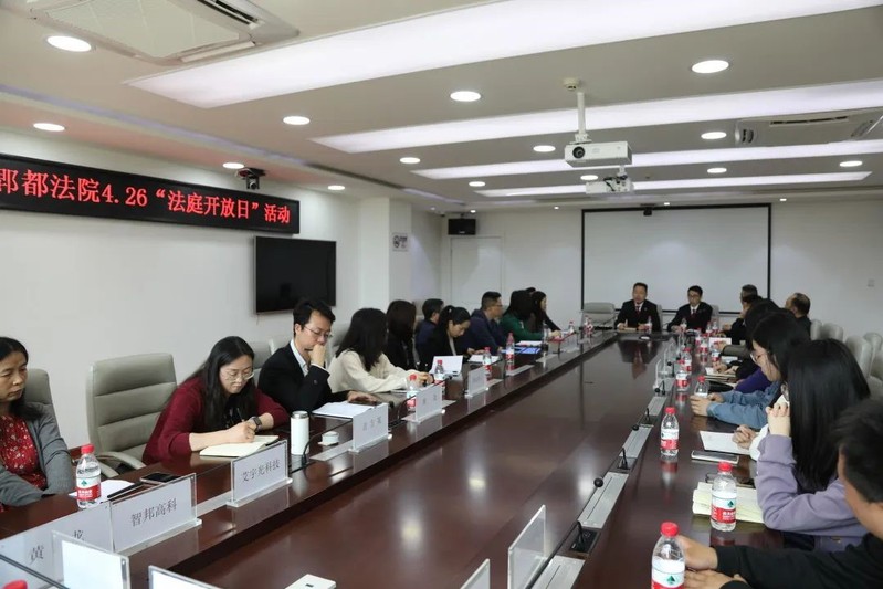 庭审结束后,还参与了“多方座谈会”。会上知识产权审判庭负责人牛果基于案情结合案情开展以案说法,并详细介绍了知识产权案件跨区域相对集中管辖以来案件办理情况、知识产权保护情况等,了解了企业知识产权保护现状、遇到的问题。与参会人员就“区块链证据的司法认定”“企业知识产权质押融资难”“法律人才培养”等内容进行了深入的交流沟通,对相关问题进行了一一解答。