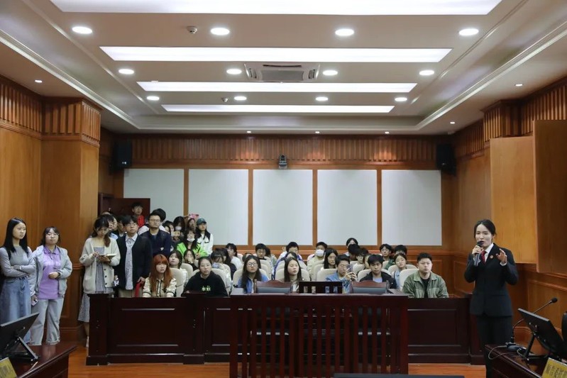 活动中,同学们观摩了一次知识产权案件的庭审,案件主要涉及商标侵权。庭审过程中,同学们零距离感受了法庭调查、举证质证、法庭辩论、被告人陈述等庭审环节,对知识产权案件的审理程序、证据规则、法律适用等方面的内容有了更深入的了解,对庭审的相关程序及纪律、礼仪等有了真切的感受,更重要的是在庄严肃穆的庭审环境中接受法治教育,感受司法公正,进行了一场沉浸式体验。