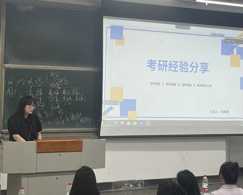 会上,来自不同专业的学长学姐,分别从考研,考公,就业三个方面分享了自己成功的经验。在考研方面,曾卓学姐,何雨曈学姐从最初的择校到公共课、专业课的复习,资料的选择与收集,以及如何保持良好的心态这几个方面进行了详细的分享;在考公方面,黄婕妤学姐,阿依妹妹学姐分享了自己备考前的岗位选择,备考过程中的学习计划和备考心态等方面的经验,同时介绍了公务员面试中的注意事项;在就业方面,谢琦学姐,罗农青学姐为大家带来了在求职前应该准备的相关资料,重点讲解了简历的制作,同时学姐们还介绍了与就业相关的方法途径,分析了就业过程中可能出现的诸多问题,为大家提供了一些自己的意见和建议。